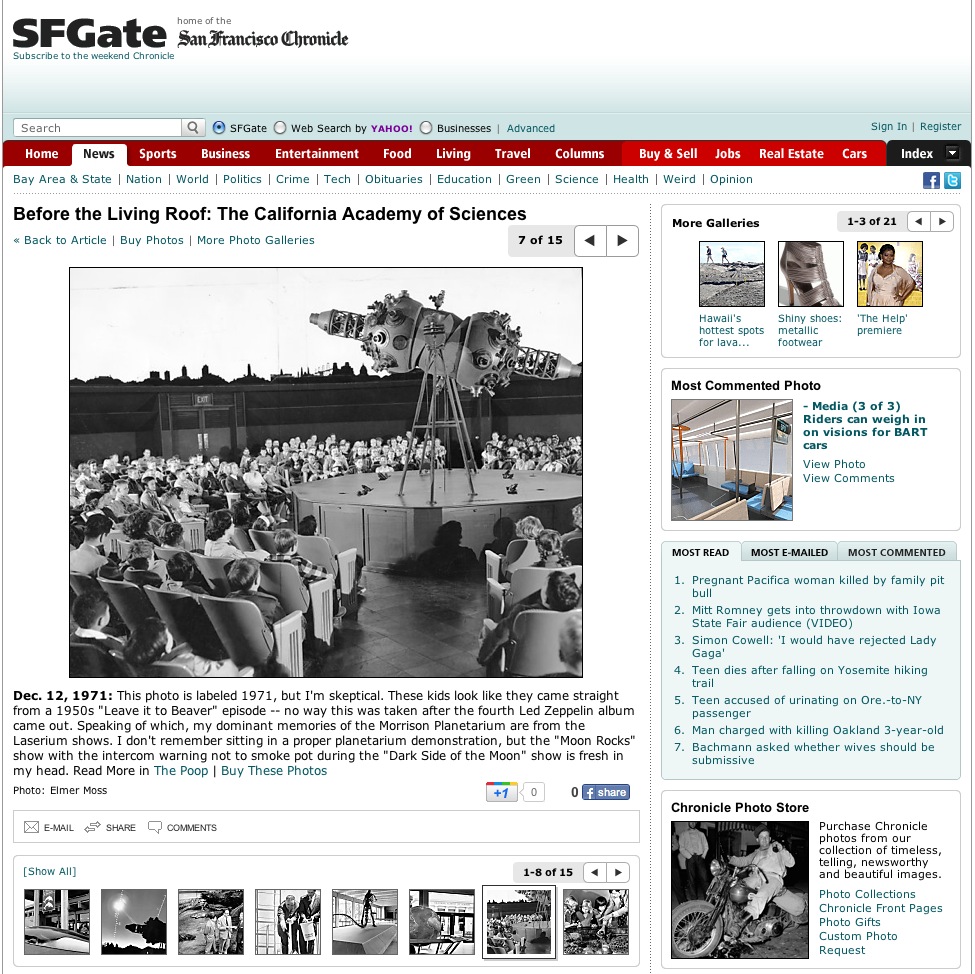 This SFGate article looked back at the California Academy of Sciences, before its recent renovation, in a series of photos. The one of Morrison Planetarium, longtime host of Laserium, caught our eye: